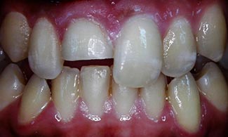 Before AfterA very successful businessman, Jim had become self-conscious about his smile. His teeth were crooked, misshaped, and very discolored. Six weeks of minor tooth movement, along with porcelain restorations, rewarded Jim with the smile of his dreams.